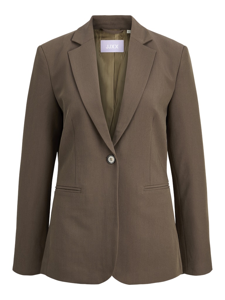 Γυναικείο καφέ blazer JJXX με κλασικό πέτο και κλείσιμο με κουμπί. Κομψό και διαχρονικό σακάκι ιδανικό για office και smart casual εμφανίσεις.