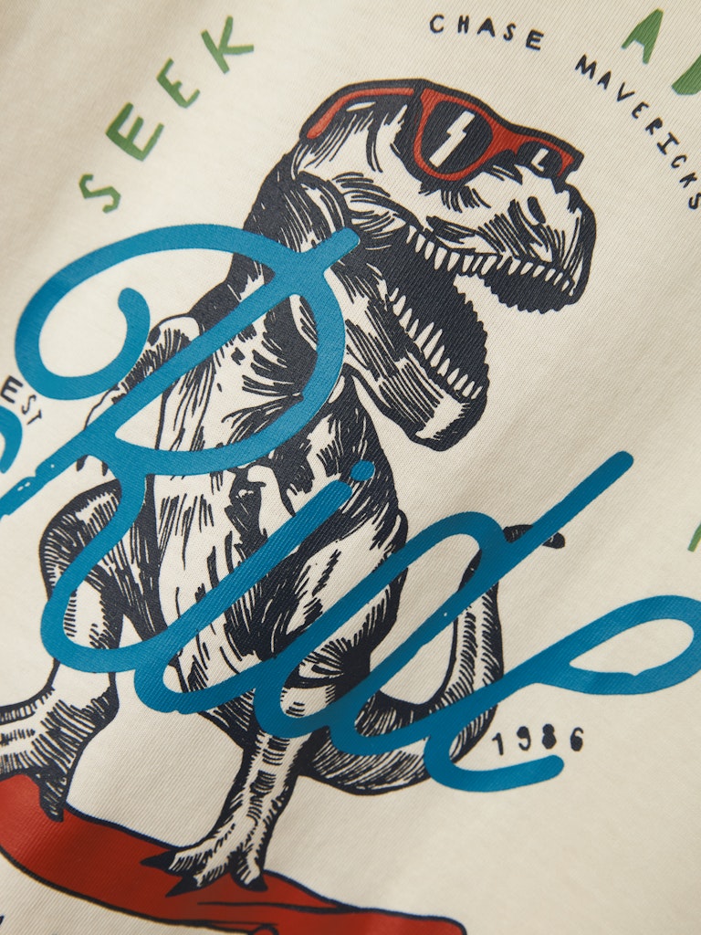 Παιδικό t-shirt ”NAME IT” με print δεινόσαυρο σε skateboard από 100% βαμβάκι – ιδανικό για καθημερινές περιπέτειες.