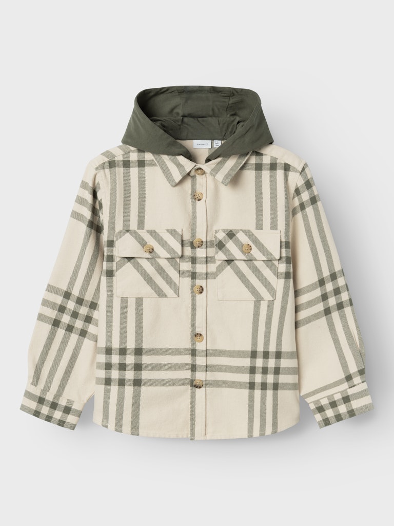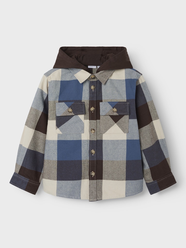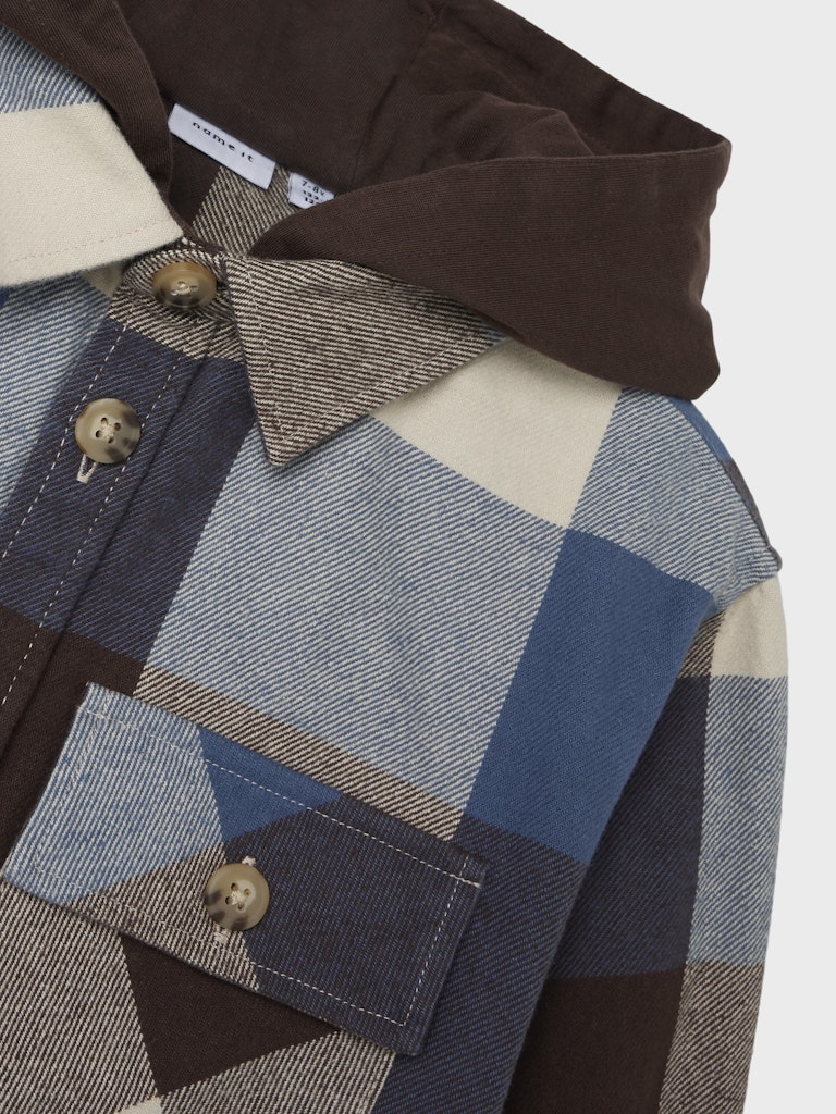 Καρό πουκάμισο-ζακέτα με κουκούλα Name It για αγοράκι, 100% οργανικό βαμβάκι, ιδανικό για casual καθημερινές εμφανίσεις.