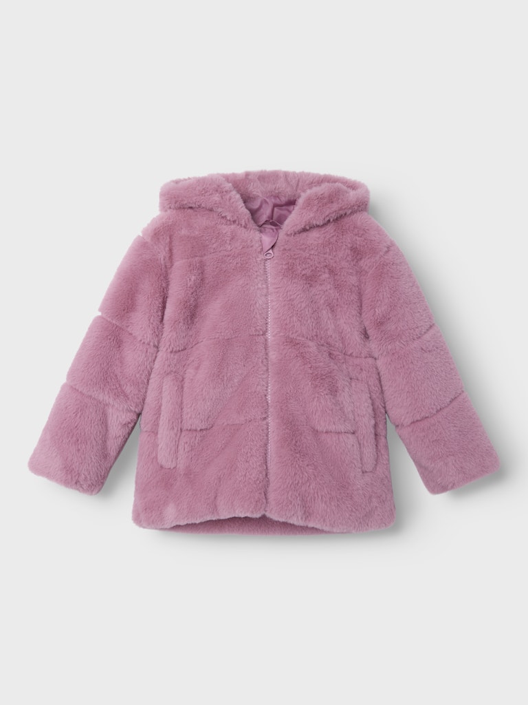 Ροζ παιδικό παλτό με κουκούλα από γούνα NAME IT – ιδανικό για ζεστά και stylish χειμερινά looks για κοριτσάκι.