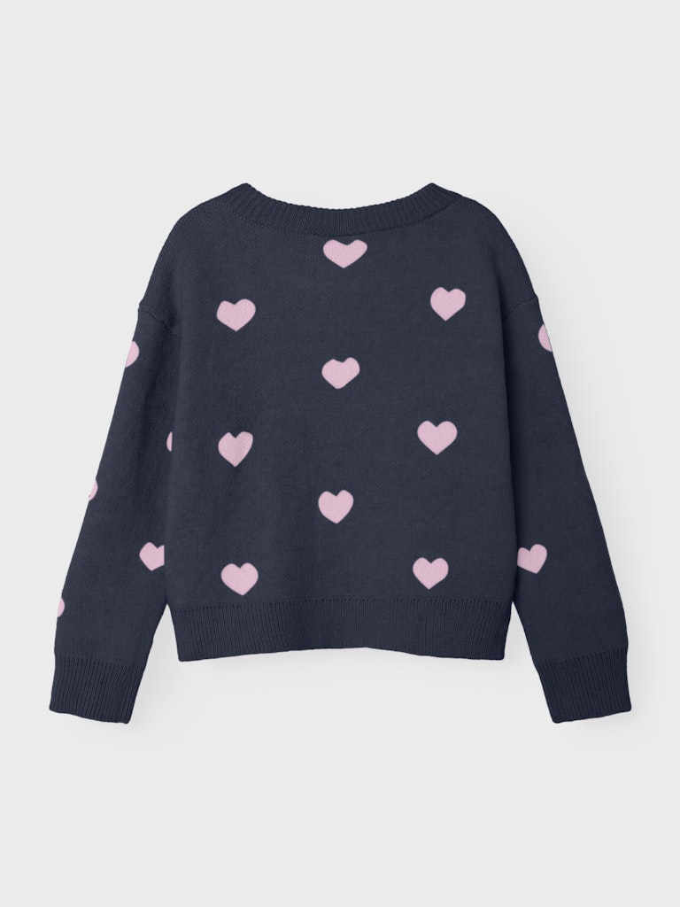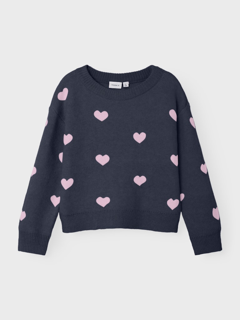 Παιδικό πλεκτό πουλόβερ NAME IT με ροζ καρδιές για κοριτσάκι. Ζεστό, μαλακό και ιδανικό για το σχολείο ή τη βόλτα.