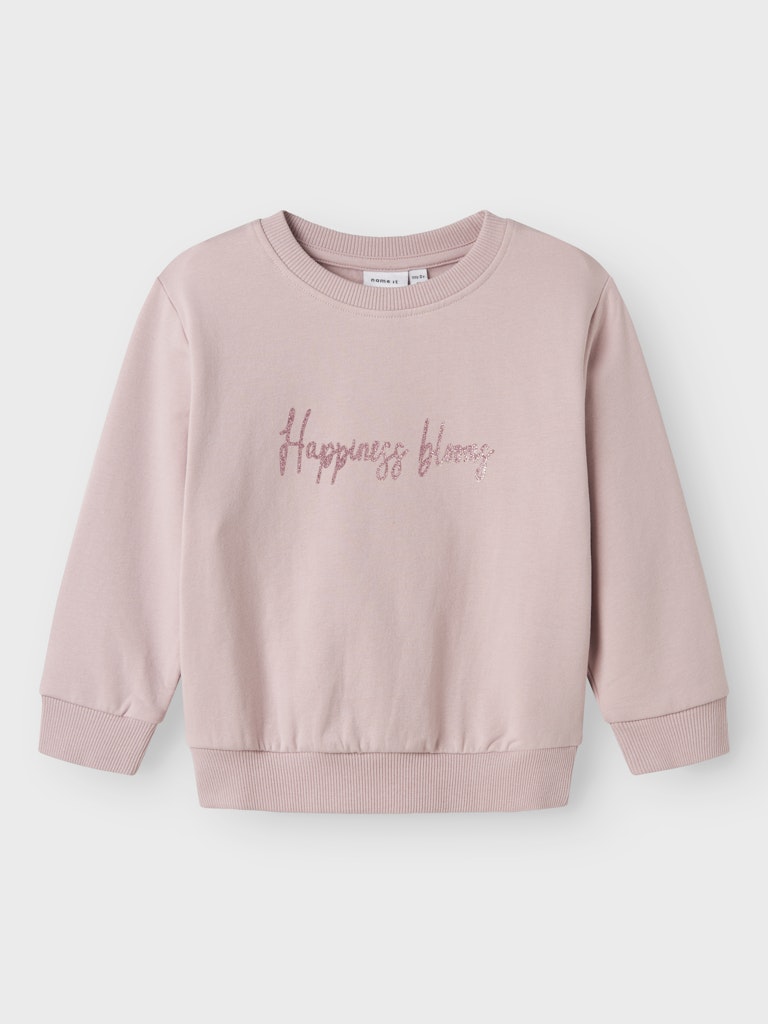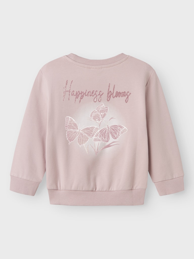 Ροζ φούτερ NAME IT με γκλίτερ “Happiness blooms” και πεταλούδες – Ιδανικό για άνετες χειμερινές εμφανίσεις με στυλ!