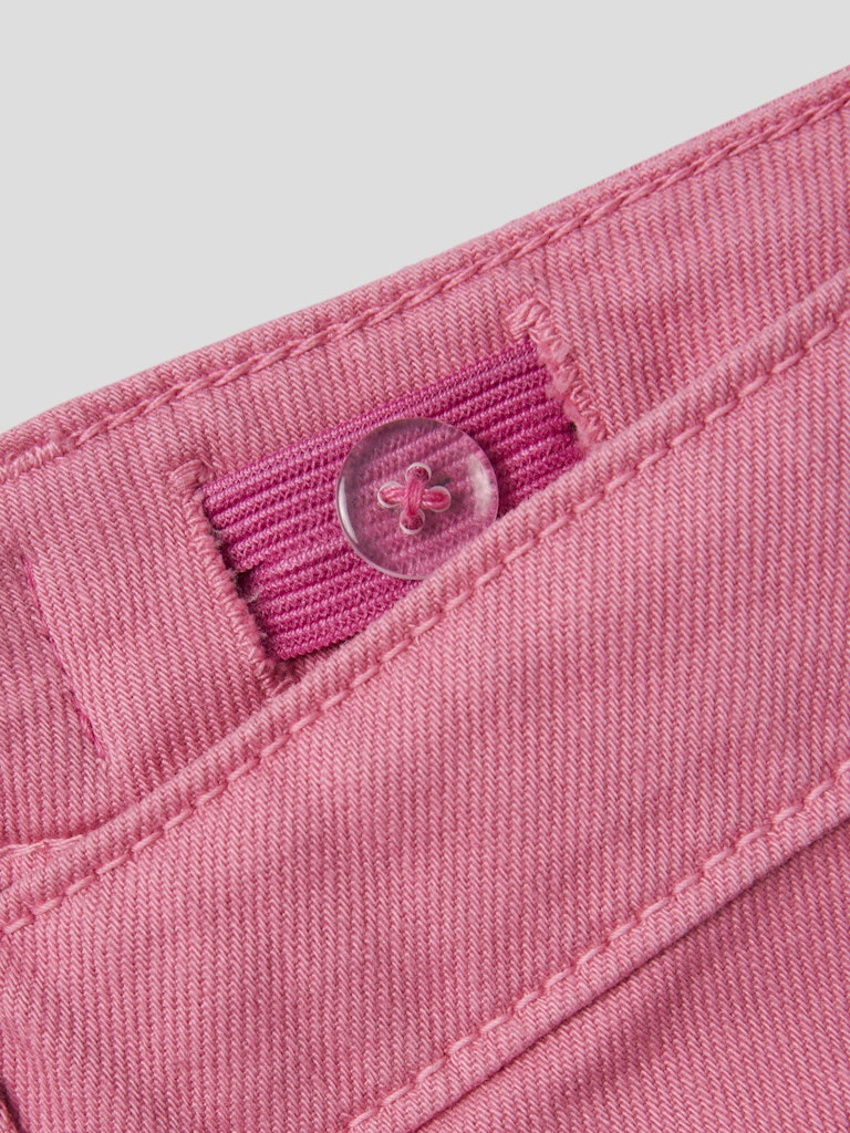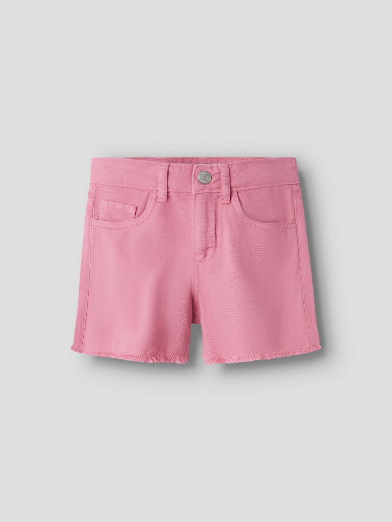 Παιδικό σορτσάκι τζιν ”NAME IT” για κορίτσια σε ροζ απόχρωση, με ξέφτια και ρυθμιζόμενη μέση – ιδανικό για καθημερινές καλοκαιρινές εμφανίσεις.