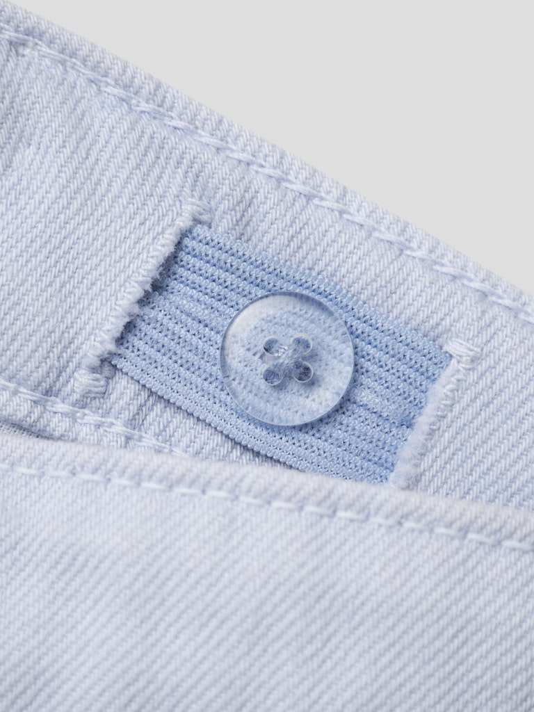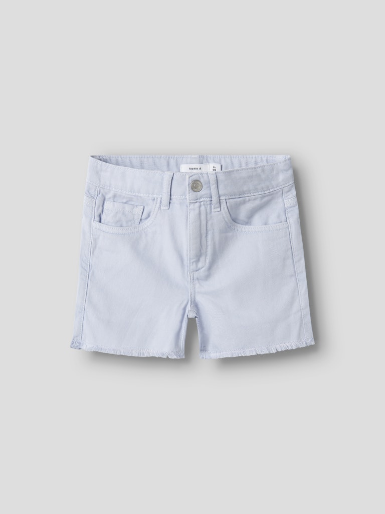 Παιδικό σορτσάκι τζιν ”NAME IT” για κορίτσια σε απαλή γαλάζια απόχρωση, με ξέφτια και ρυθμιζόμενη μέση – ιδανικό για καθημερινές καλοκαιρινές εμφανίσεις.
