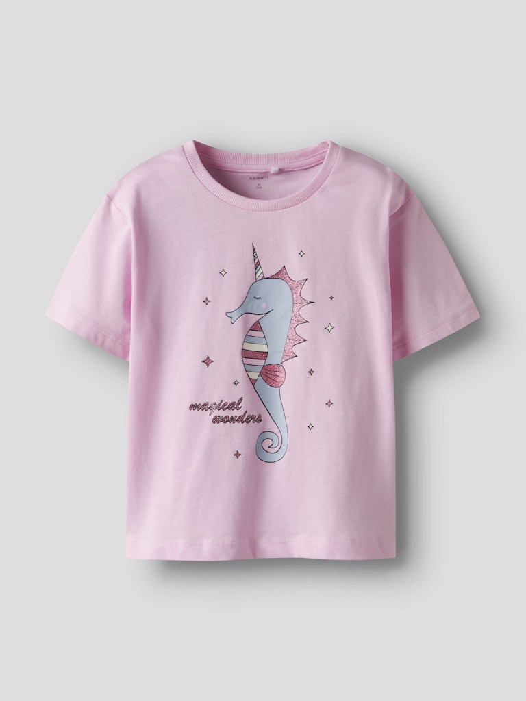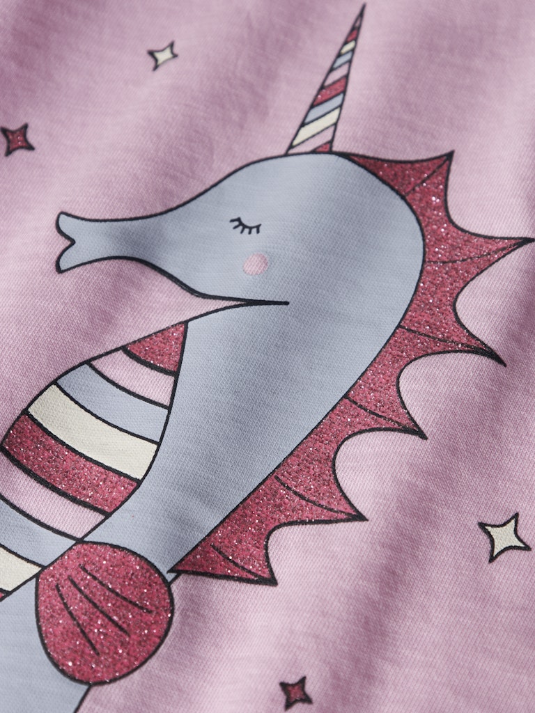 Παιδική μπλούζα ”NAME IT” με glitter μονόκερο-ιππόκαμπο και σύνθεση από βαμβάκι – για κορίτσια 1-7 ετών.