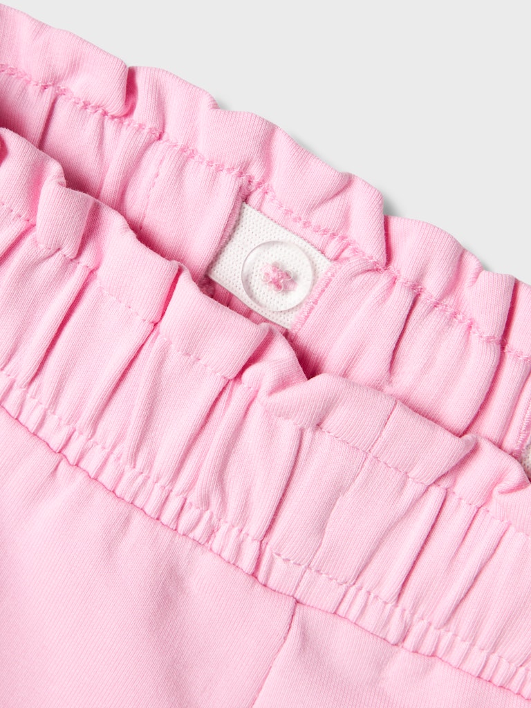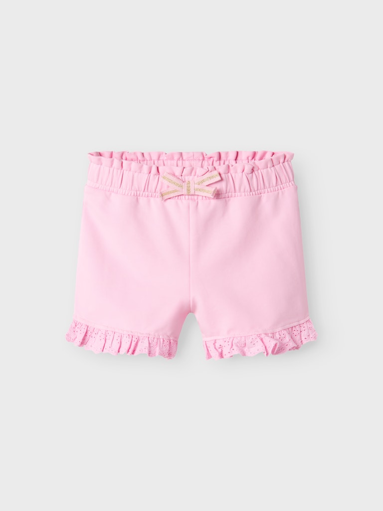 Ροζ παιδικό σορτς ”NAME IT” με φιογκάκι και βολάν για κορίτσια 1-7 ετών από οργανικό βαμβάκι. Άνετο και στιλάτο για το καλοκαίρι.