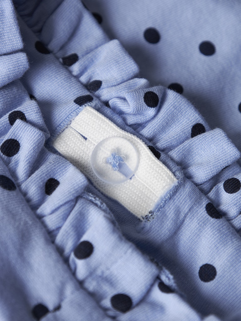Παιδικό σορτς ”NAME IT” με πουά print και ρυθμιζόμενη μέση, από οργανικό βαμβάκι. Ιδανικό για κορίτσια 1-7 ετών.