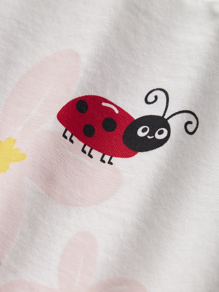 Λευκή παιδική μπλούζα ”NAME IT” με print πασχαλίτσας και λουλουδιών από 100% βαμβάκι – για κορίτσια 1-7 ετών.