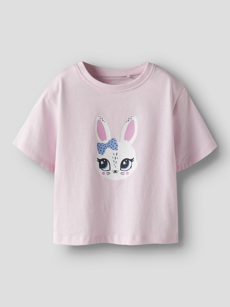 Παιδική μπλούζα ”NAME IT” για κορίτσι με στάμπα λαγουδάκι και μπλε φιόγκο από 100%βαμβάκι – ιδανική για κάθε μέρα.
