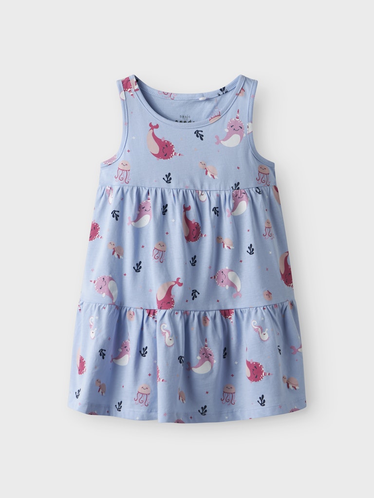 Παιδικό γαλάζιο φόρεμα ”NAME IT” με σχέδιο θαλάσσια πλάσματα, από 100% βαμβάκι – ιδανικό για το καλοκαίρι.