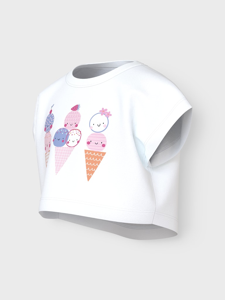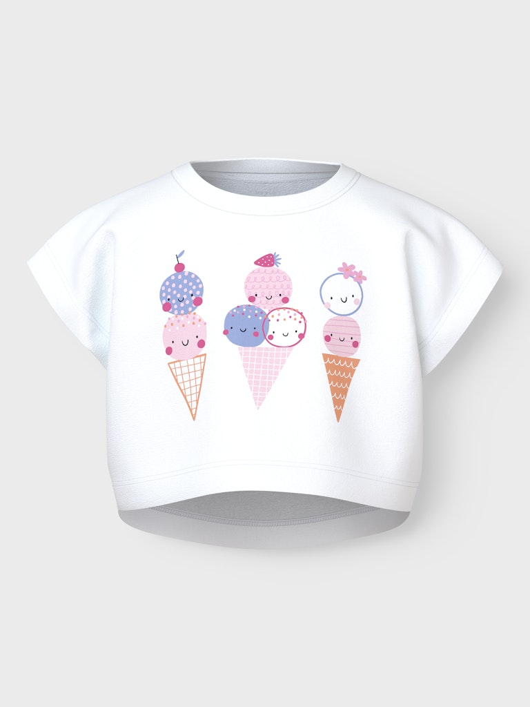 Παιδικό ροζ crop top ”NAME IT”. Print με χαρούμενα παγωτάκια στο μπροστινό μέρος, για κορίτσια – ιδανικό για το καλοκαίρι.