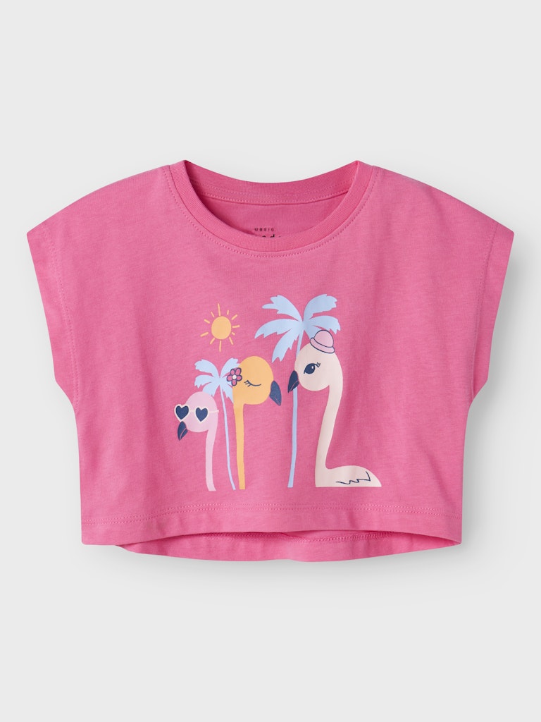 Παιδικό ροζ crop top ”NAME IT” με φλαμίνγκο print για κορίτσια, από βαμβάκι – ιδανικό για το καλοκαίρι.