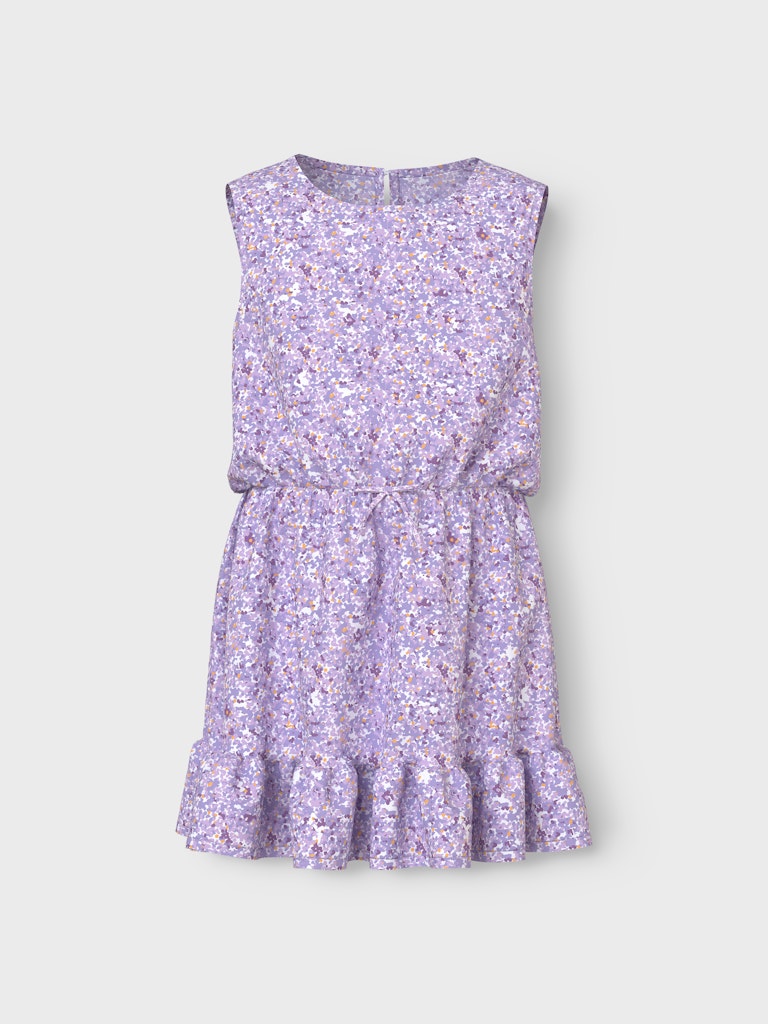 Λιλά παιδικό φόρεμα ”NAME IT” με λουλουδάτο print και βολάν για κορίτσια – Άνετο και κομψό, ιδανικό για το καλοκαίρι.