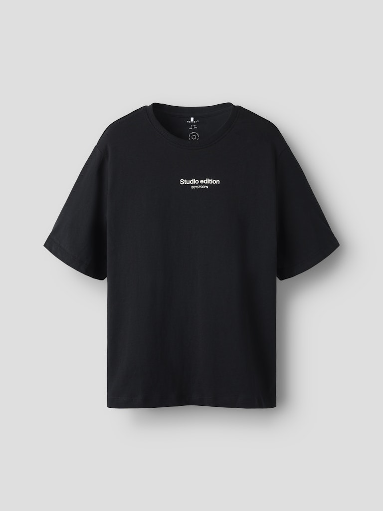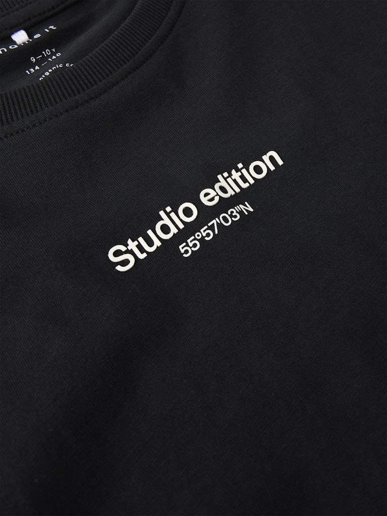 Μαύρο παιδικό t-shirt ”NAME IT” με print “Studio Edition” από 100% οργανικό βαμβάκι – ιδανικό για καθημερινές εμφανίσεις.