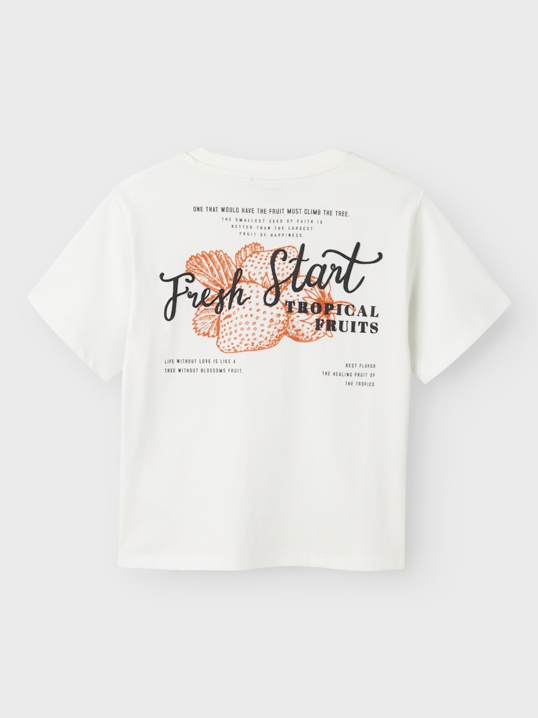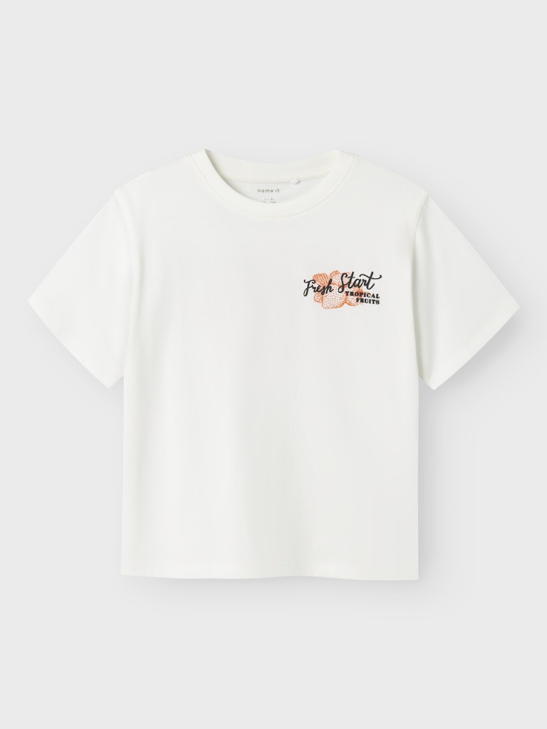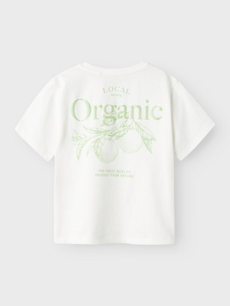 Λευκό παιδικό t-shirt ”NAME IT” για κορίτσια από 100% οργανικό βαμβάκι με print “Organic” – ιδανικό για καλοκαιρινές εμφανίσεις με οικολογική διάθεση.