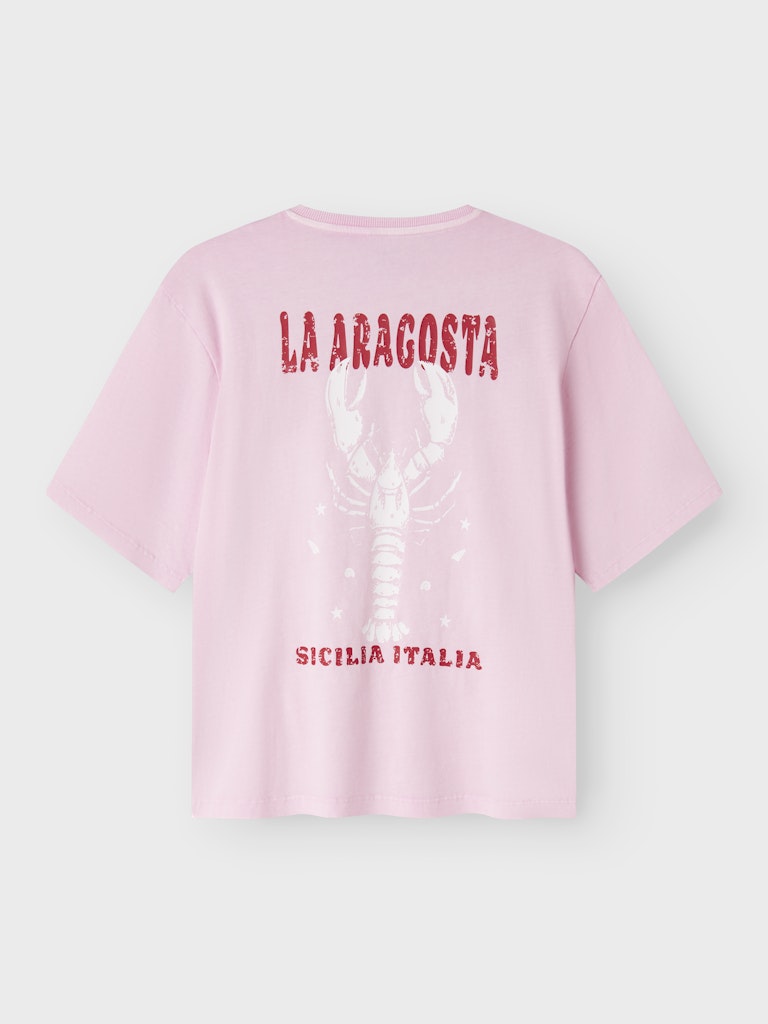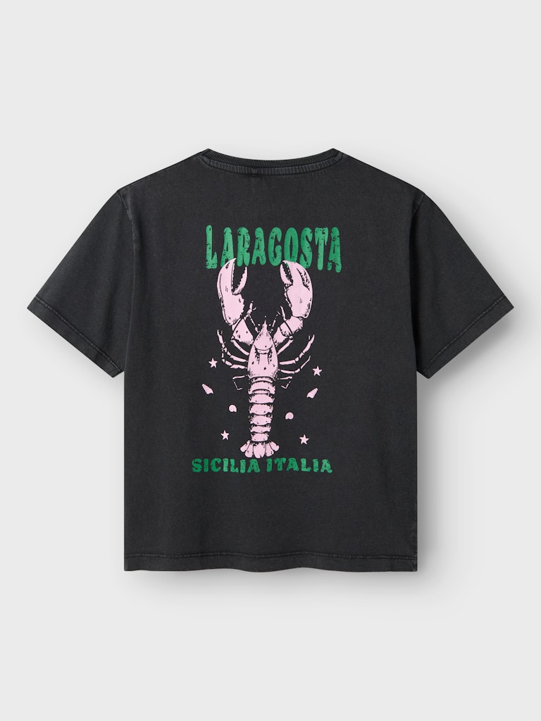 Παιδικό t-shirt ”NAME IT” για κορίτσια με στάμπα “LARAGOSTA” και print αστακό. Από 100% οργανικό βαμβάκι – άνετο και στιλάτο για το καλοκαίρι.