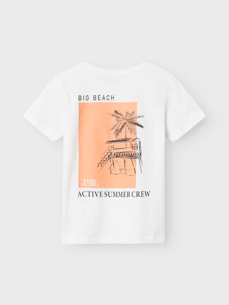 Παιδική μπλούζα ”NAME IT” με print παραλίας σε λευκή απόχρωση, από 100% οργανικό βαμβάκι – ιδανική για καλοκαιρινές περιπέτειες.