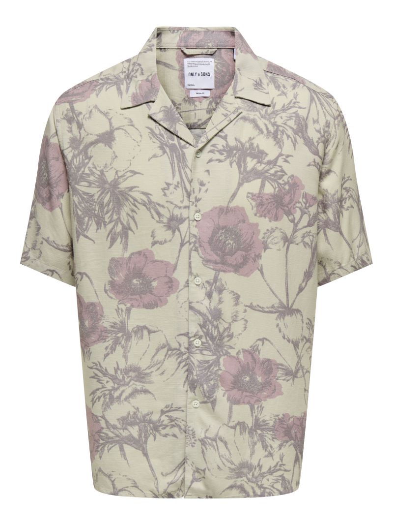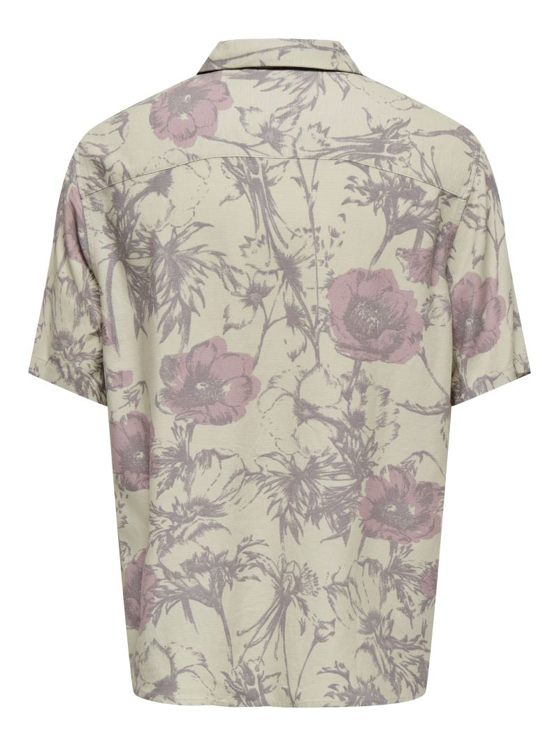 Ανδρικό πουκάμισο ONLY & SONS με μωβ floral print, από βιώσιμο μείγμα viscose και λινού – ιδανικό για καλοκαιρινές εμφανίσεις.