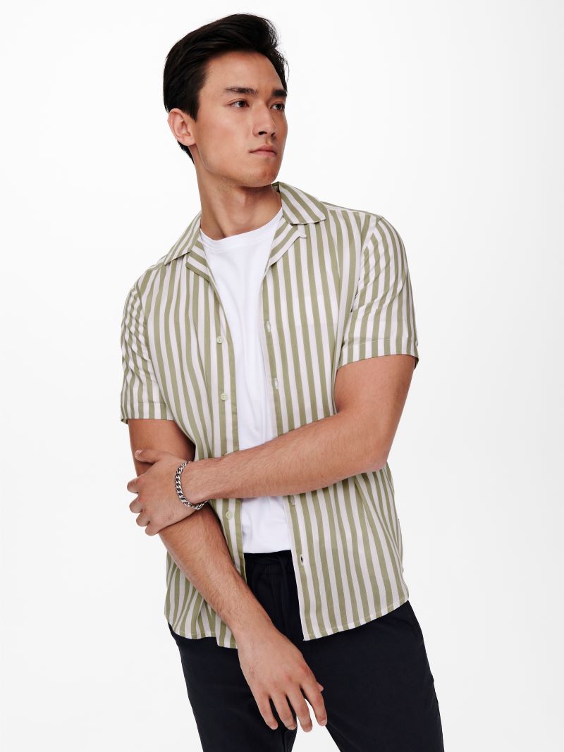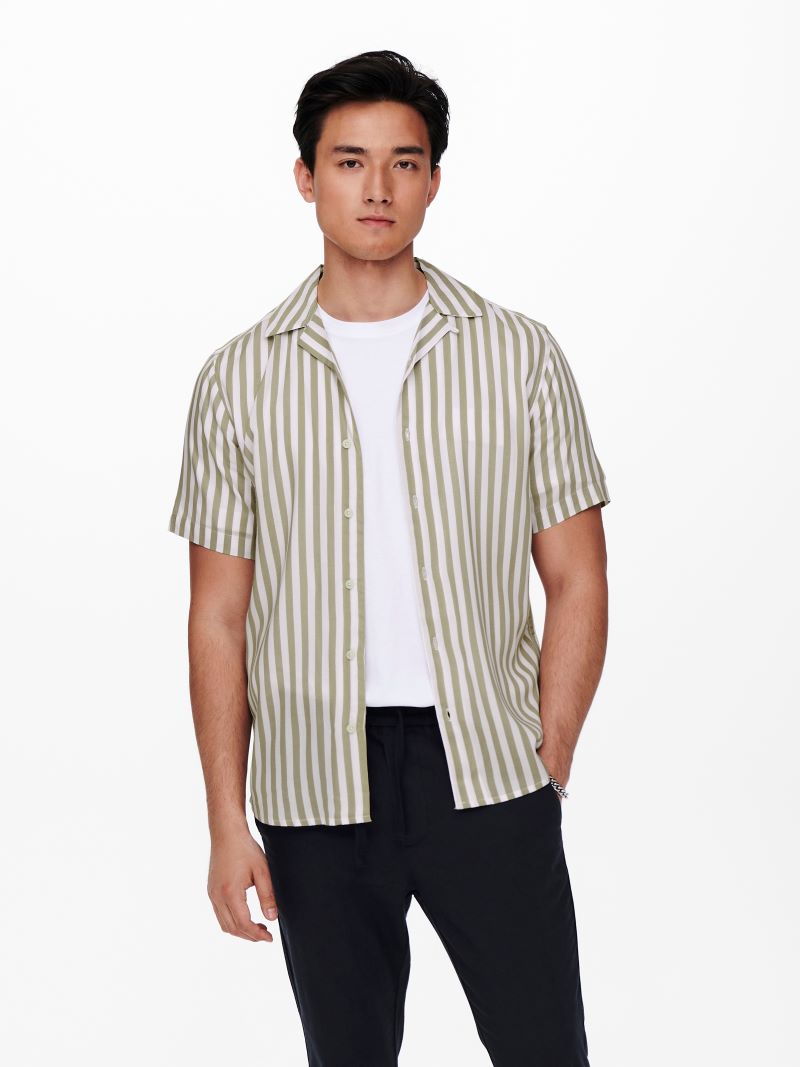 Ανδρικό πουκάμισο ONLY & SONS με κάθετες ρίγες από 100% βιώσιμη βισκόζη – ιδανικό για διαχρονικά, κομψά καλοκαιρινά looks.