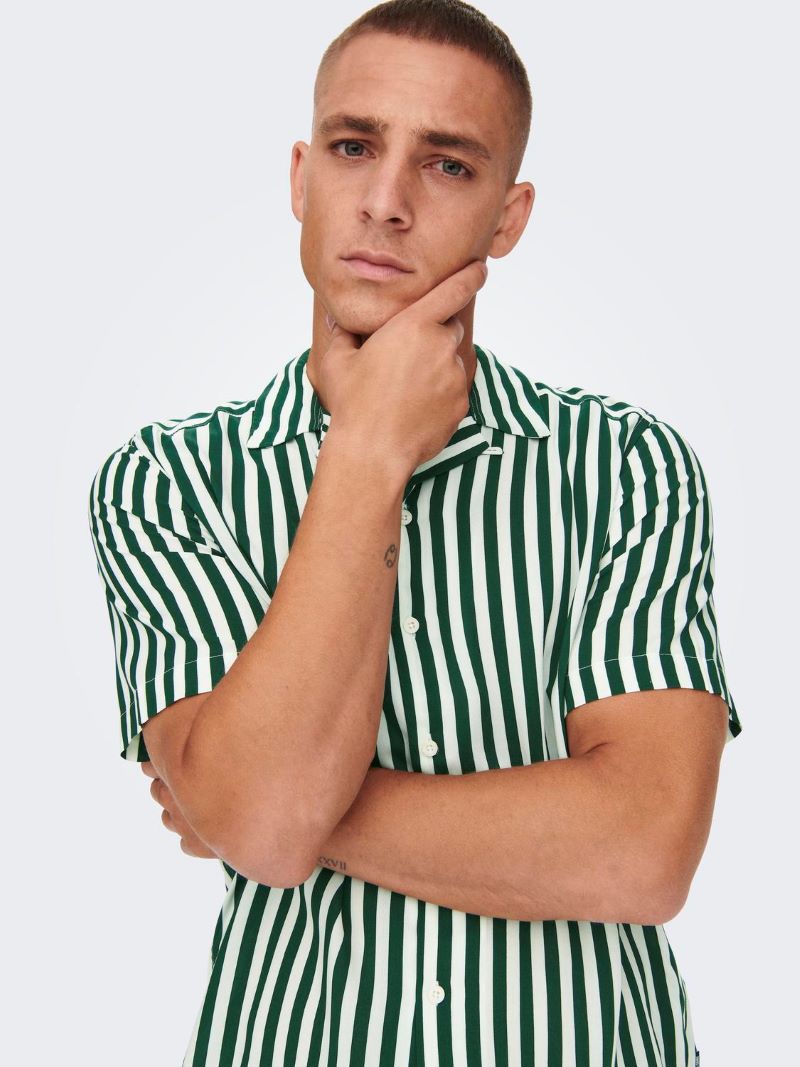 Ανδρικό πουκάμισο ONLY & SONS με ρίγες από 100% βιώσιμη βισκόζη – ιδανικό για καλοκαιρινές, στιλάτες εμφανίσεις με χαρακτήρα.