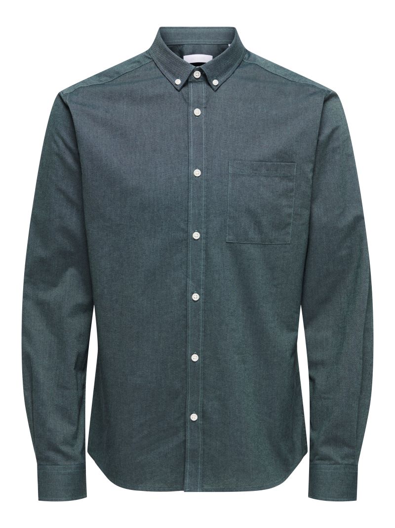 Ανδρικό πουκάμισο oxford ONLY & SONS από 100% βαμβάκι σε σκούρο πράσινο, ιδανικό για smart-casual εμφανίσεις με διαχρονικό χαρακτήρα.