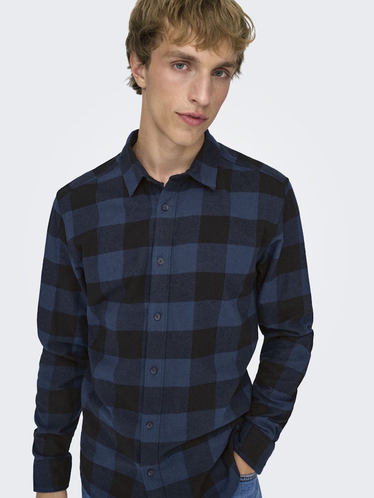 Ανδρικό καρό πουκάμισο ONLY & SONS σε μπλε και μαύρο χρώμα. Άνετη εφαρμογή και διαχρονικό casual στυλ για καθημερινά outfits.