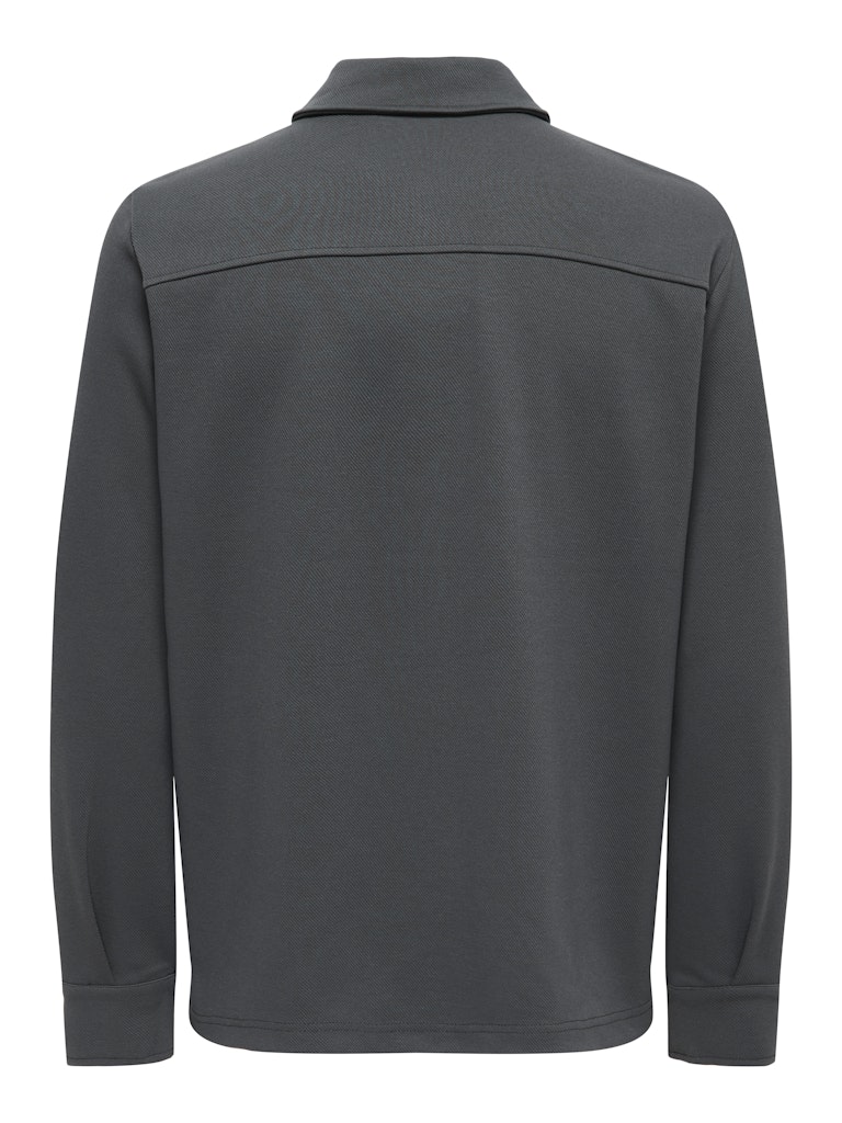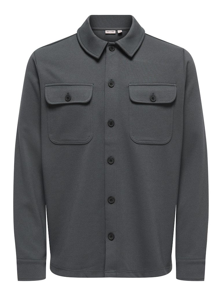 Ανδρικό overshirt ONLY & SONS σε γκρι σκούρο χρώμα με δύο τσέπες στο στήθος. Ιδανικό για layering και casual καθημερινά outfits με μοντέρνο urban στυλ.