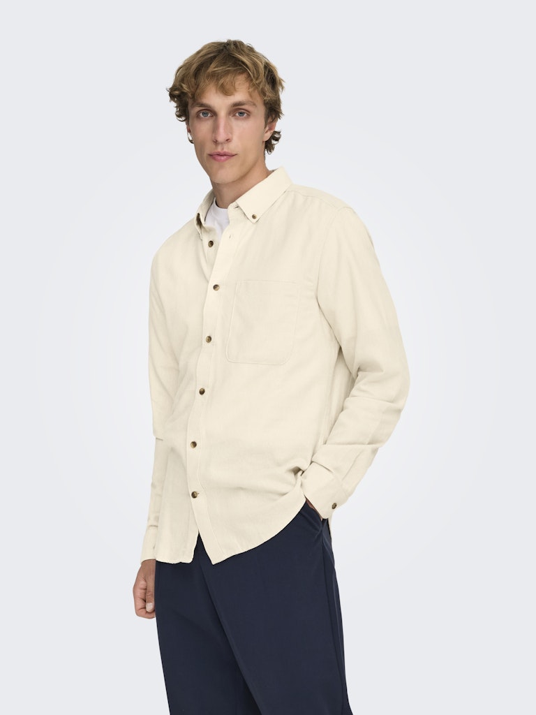 Ανδρικό πουκάμισο ONLY & SONS σε μπεζ χρώμα. Άνετη εφαρμογή και διαχρονικό casual στυλ για καθημερινά outfits.