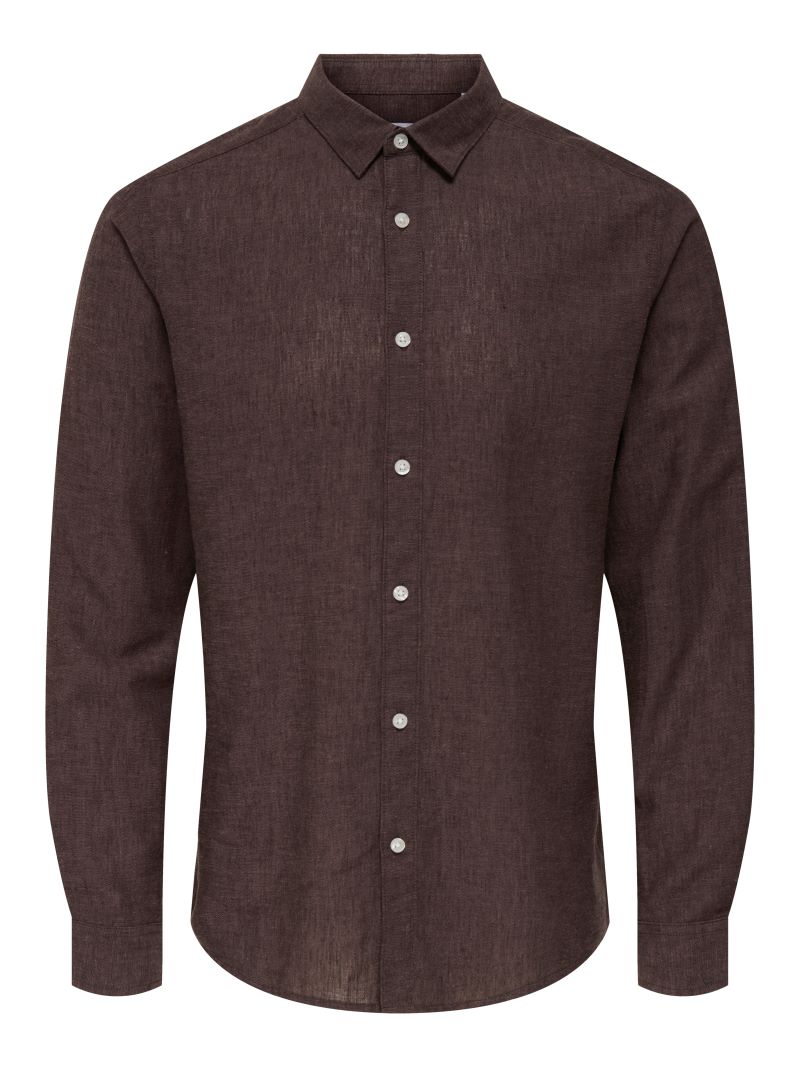 Coffe bean λινό πουκάμισο ONLY & SONS σε slim fit γραμμή – ιδανικό για κομψές καλοκαιρινές εμφανίσεις.