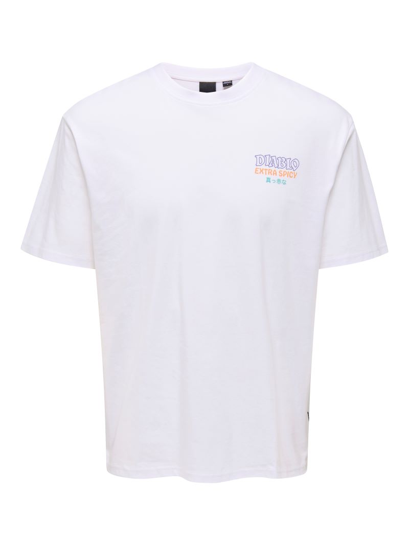 Λευκό t-shirt ONLY & SONS από 100% οργανικό βαμβάκι με εντυπωσιακό τύπωμα.