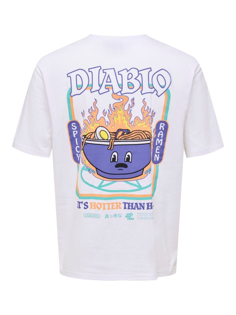 Λευκό T-shirt με κόμικ τύπωμα “Diablo Ramen”