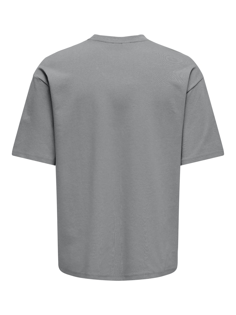 Ανδρικό oversized t-shirt ONLY & SONS σε γκρι χρώμα με minimal σχεδιασμό και άνετη εφαρμογή. Ιδανικό για casual και street style εμφανίσεις.
