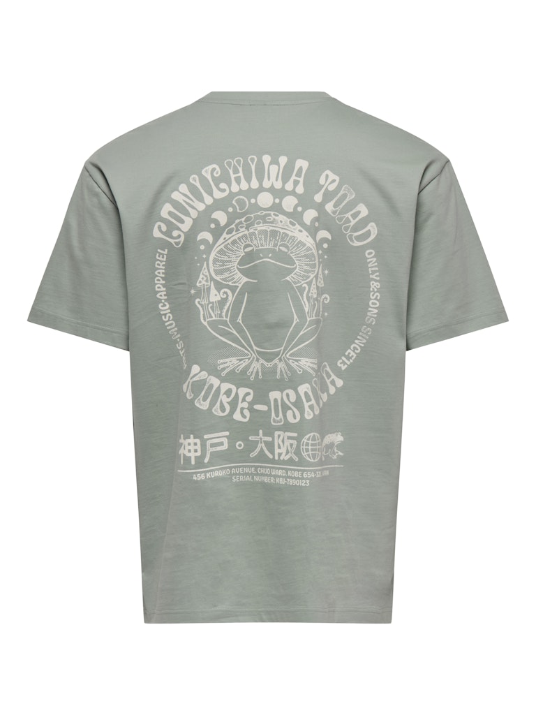 Ανδρικό t-shirt ONLY & SONS σε χακί χρώμα με μικρό print μπροστά και μεγάλο graphic “Konichiwa Toad – Kobe Osaka” στην πλάτη. Ιδανικό για casual και street style εμφανίσεις.