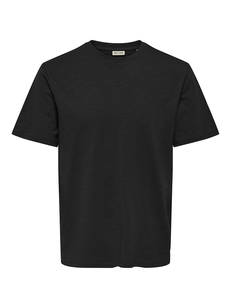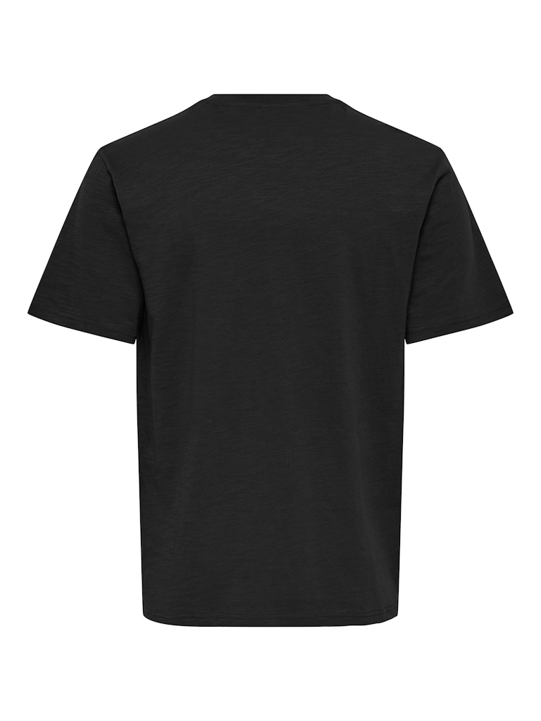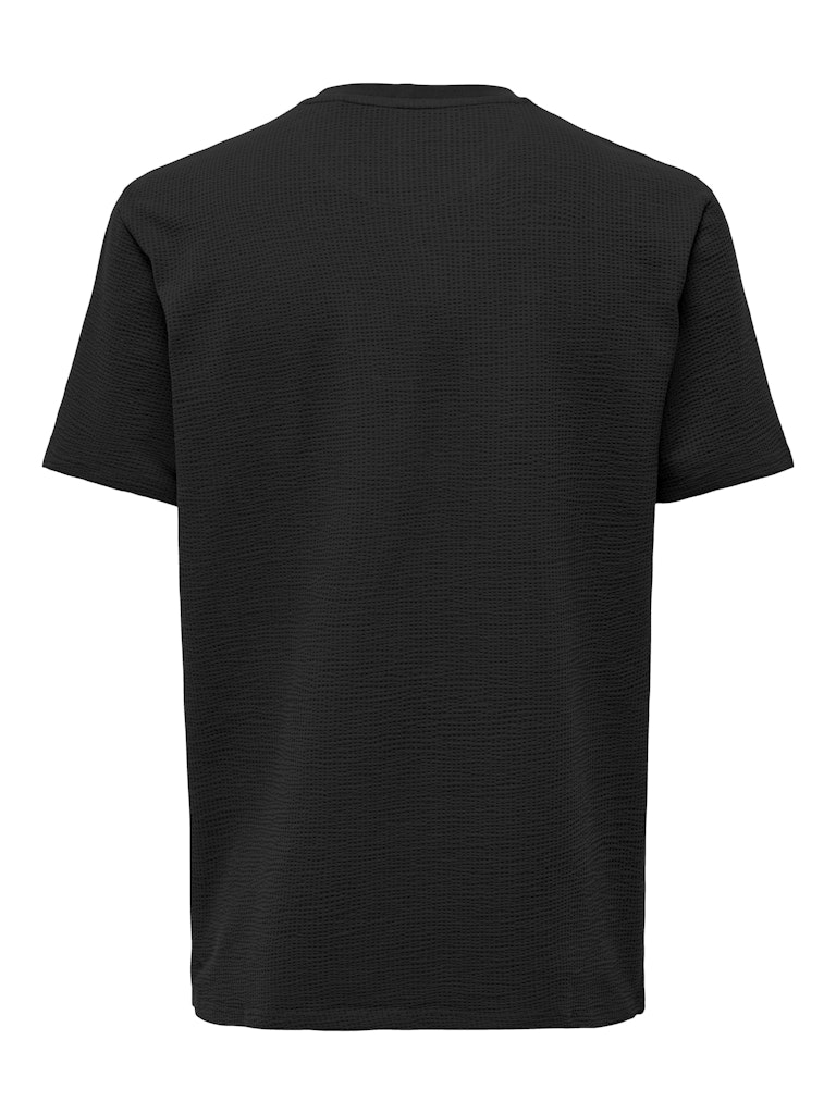 Ανδρικό t-shirt ONLY & SONS σε μαύρο χρώμα με ανάγλυφη υφή υφάσματος. Minimal design και άνετη εφαρμογή για casual και smart casual εμφανίσεις.