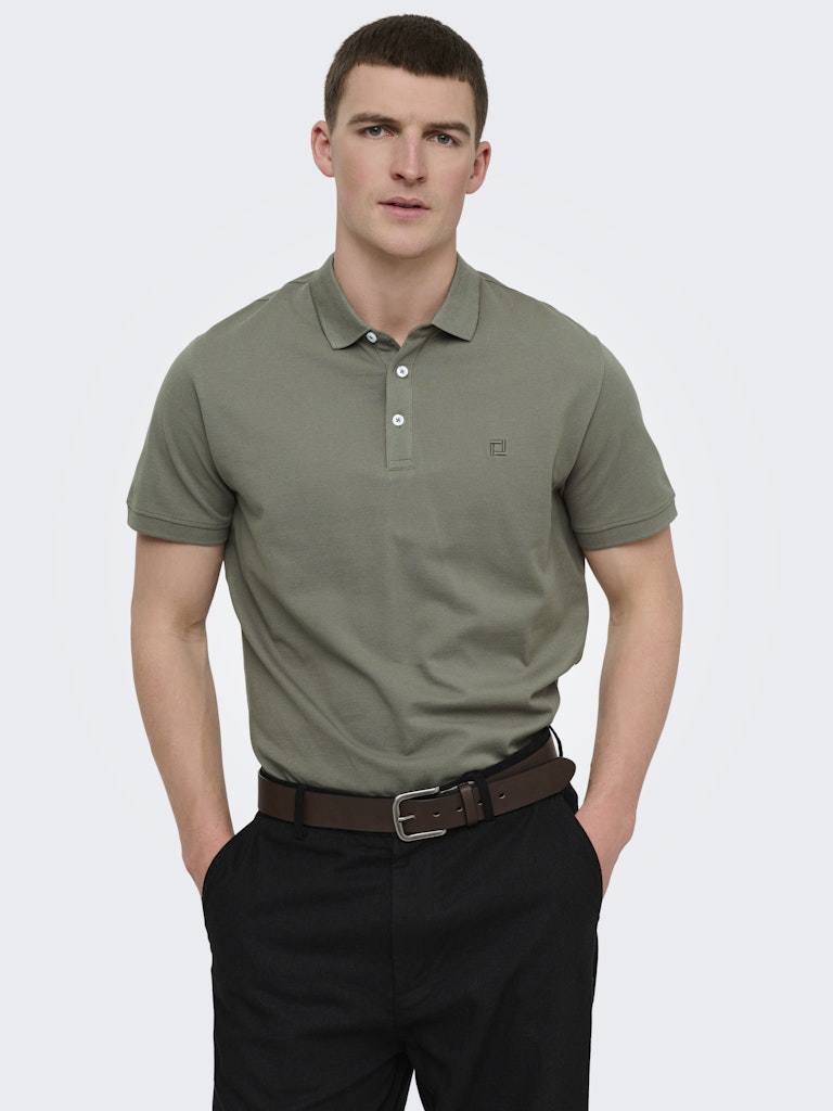 Ανδρικό polo μπλουζάκι ONLY & SONS σε χακί χρώμα με pique ύφασμα και κουμπιά στον γιακά. Κομψή επιλογή για casual και smart casual εμφανίσεις.