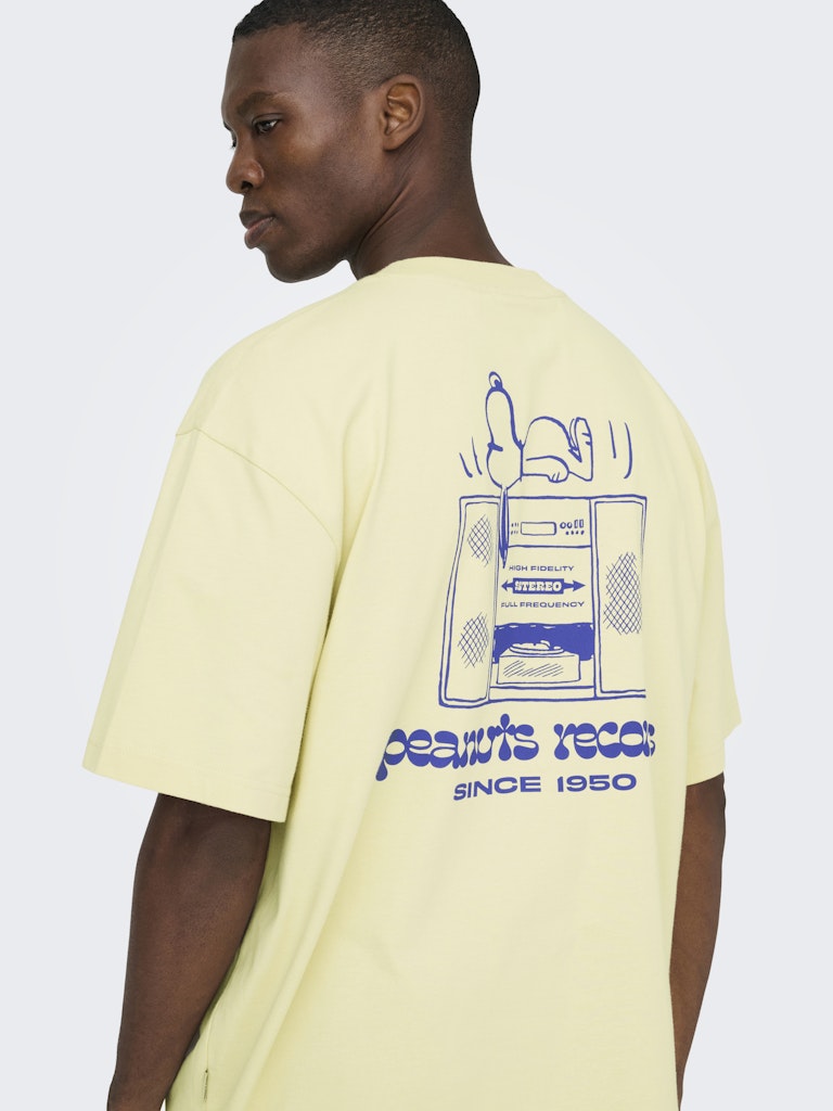 Ανδρικό t-shirt ONLY & SONS σε ανοιχτό κίτρινο χρώμα με Snoopy “Peanuts Records” print μπροστά και μεγάλο graphic στην πλάτη. Ιδανικό για casual και streetwear εμφανίσεις.