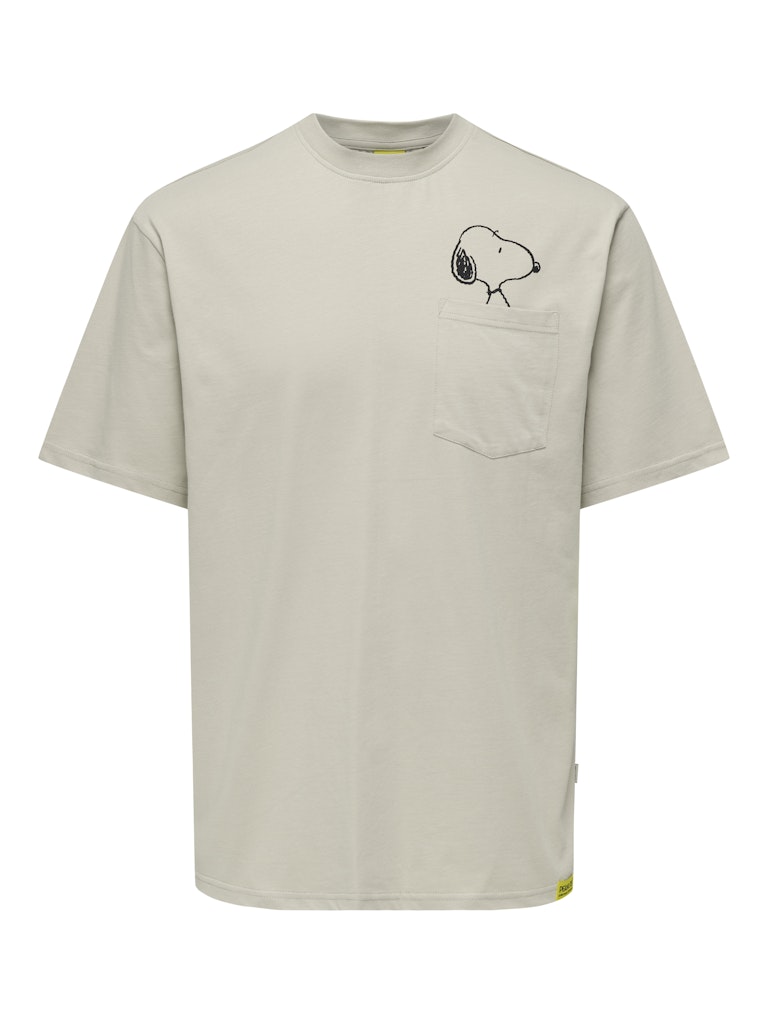 Ανδρικό t-shirt ONLY & SONS σε μπεζ χρώμα με τσέπη στο στήθος και Snoopy graphic. Άνετη εφαρμογή και casual στυλ για καθημερινά outfits.