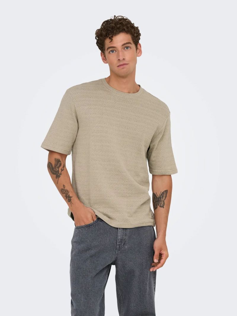 Ανδρικό πλεκτό T-shirt της Only & Sons σε χαλαρή γραμμή και μπεζ απόχρωση – για ξεχωριστές casual εμφανίσεις.