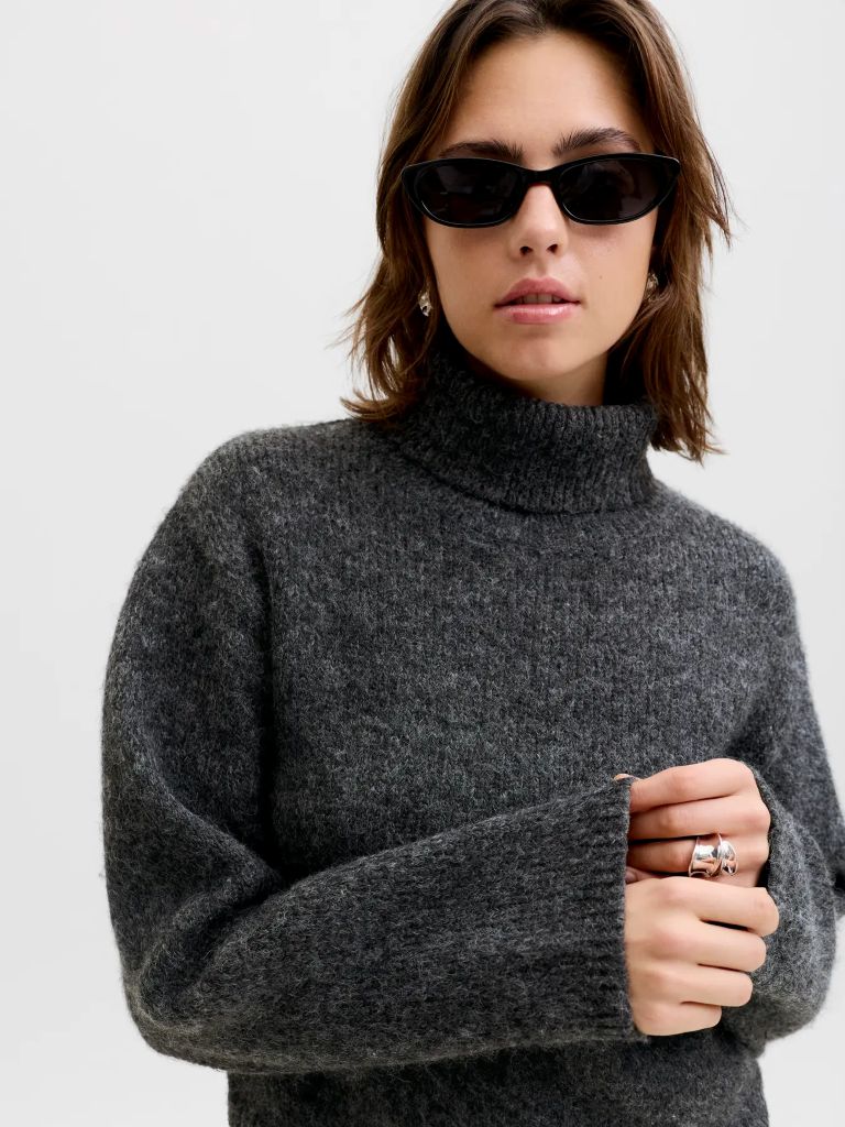Γκρι πλεκτό ζιβάγκο JJXX με απαλή υφή και χαλαρή γραμμή, ιδανικό για κομψά και ζεστά χειμερινά outfits.