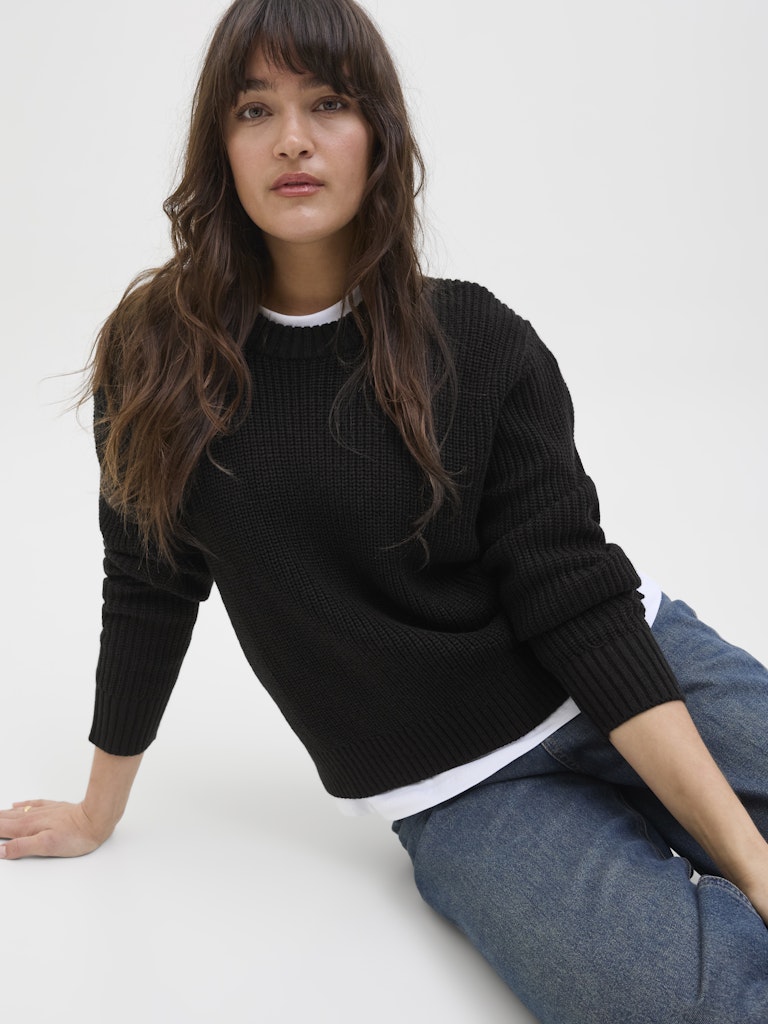 Μαύρο πλεκτό πουλόβερ JJXX με chunky πλέξη, ιδανικό για κομψά και ζεστά χειμερινά outfits.
