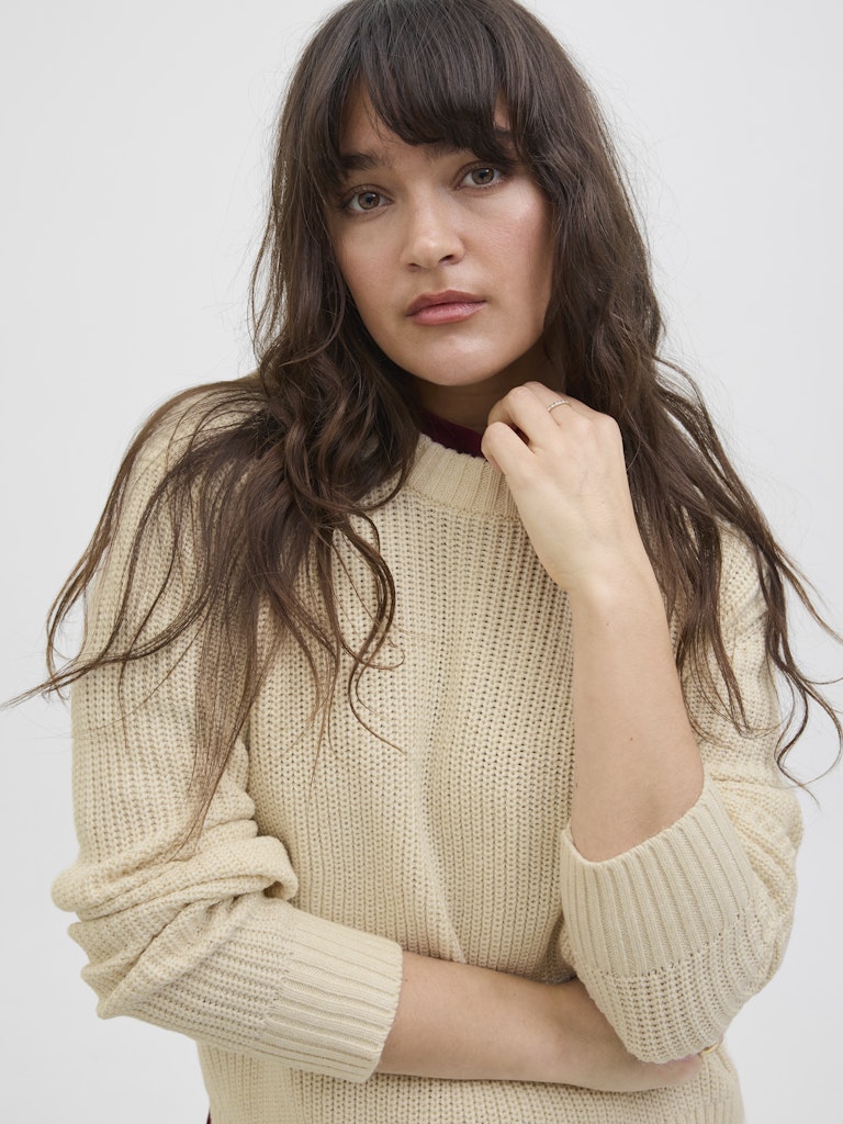 Μπεζ πλεκτό πουλόβερ JJXX με textured πλέξη και κανονική εφαρμογή, ιδανικό για κομψά και άνετα χειμερινά outfits.