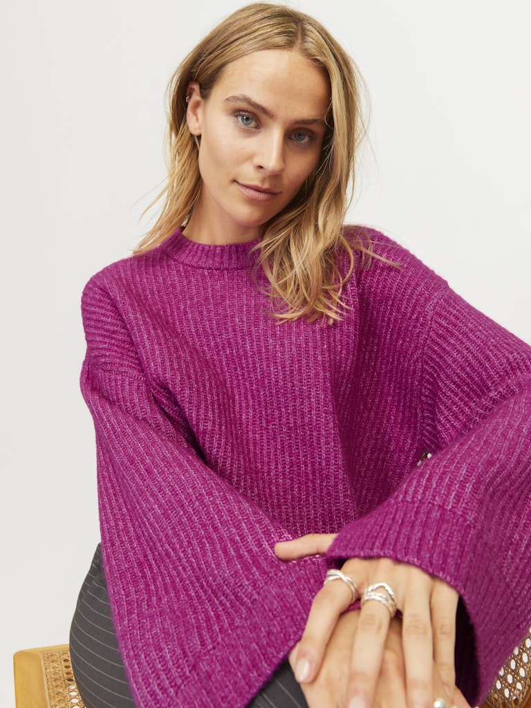 Φούξια πλεκτό πουλόβερ JJXX με rib πλέξη και φαρδιά μανίκια, ιδανικό για δυναμικά και σύγχρονα χειμερινά outfits.