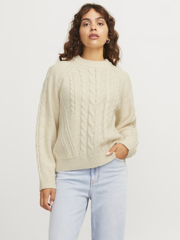 Εκρού πλεκτό πουλόβερ JJXX με σχέδιο πλεξούδας, ιδανικό για κομψά και ζεστά χειμερινά outfits.