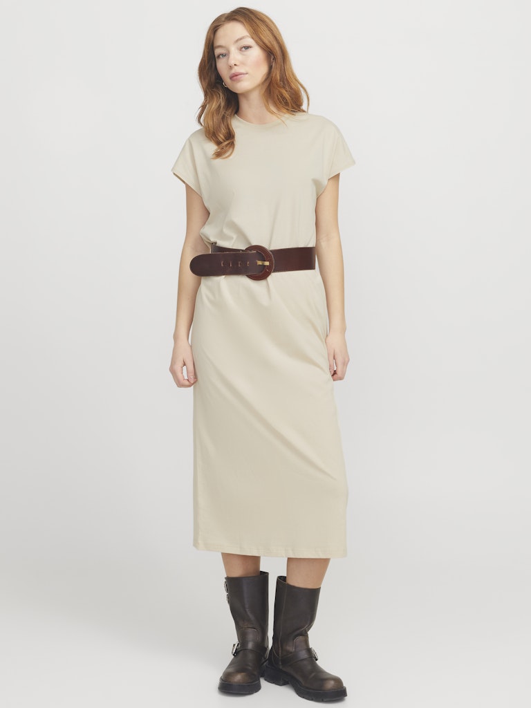 Μπεζ midi t-shirt φόρεμα JJXX από 100% οργανικό βαμβάκι – casual, άνετο και ευέλικτο για κάθε στιγμή της ημέρας.