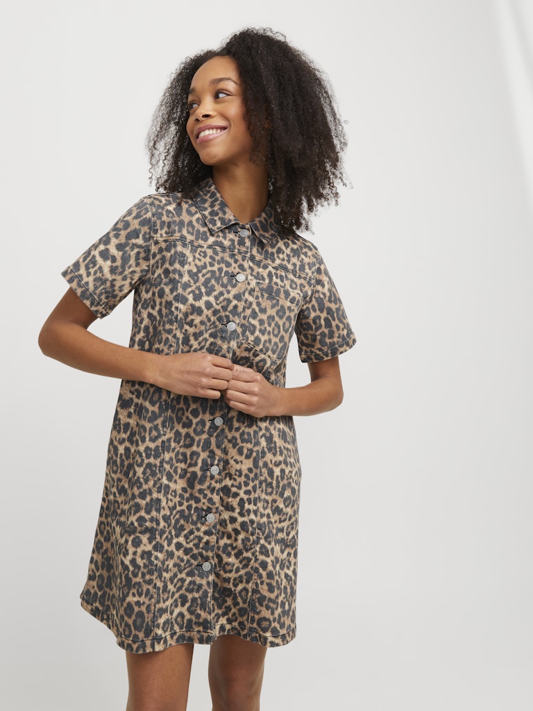 Μίνι φόρεμα σε Α γραμμή JJXX με leopard print και κουμπιά, από 100% βαμβάκι. Ιδανικό για street style εμφανίσεις με χαρακτήρα.