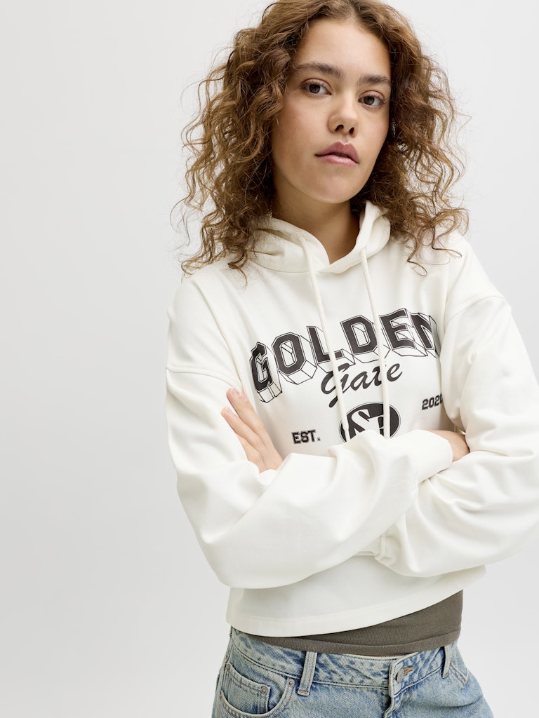 Γυναικείο εκρού cropped hoodie JJXX με college print “Golden State”. Ιδανικό για casual και street style εμφανίσεις με μοντέρνο χαρακτήρα.