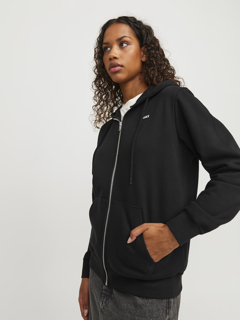 Μαύρη ζακέτα φούτερ JJXX με φερμουάρ και κουκούλα, ιδανική για καθημερινά casual και athleisure outfits.