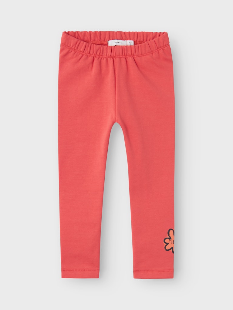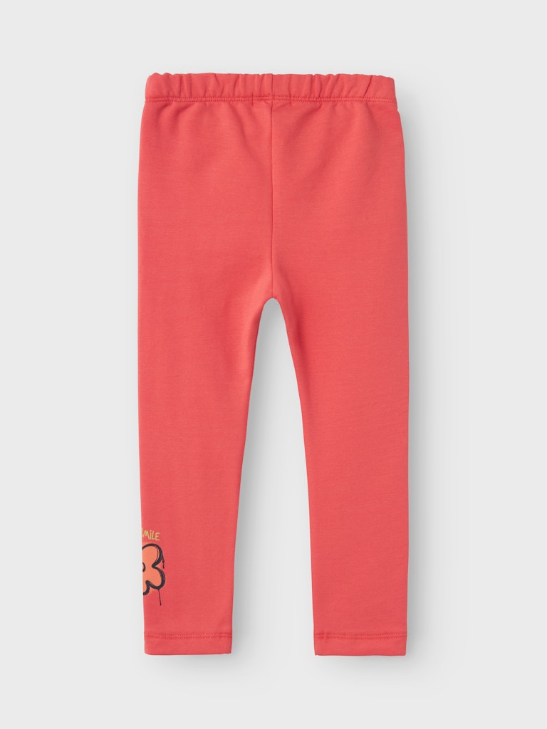 Κοριτσίστικο κολάν NAME IT σε κοραλλί χρώμα με print “Smile”, από οργανικό βαμβάκι, ιδανικό για καθημερινές εμφανίσεις με άνεση και στυλ.