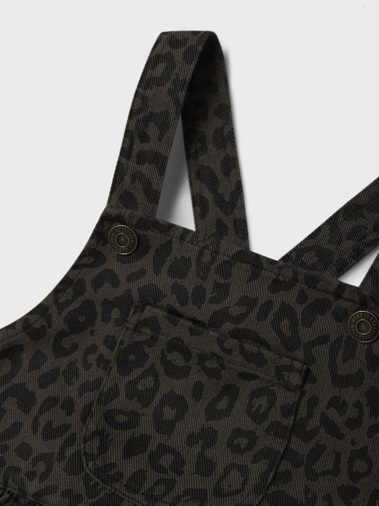 Μοντέρνα και παιχνιδιάρικη, αυτή η σαλοπέτα-φόρεμα με λεοπάρ σχέδιο είναι ιδανική για τα πιο στιλάτα looks. Ο συνδυασμός άνεσης και τάσης την κάνει απαραίτητη επιλογή για κάθε μικρή fashionista. Οι τιράντες κουμπώνουν στους ώμους και η φουσκωτή φούστα προσθέτει κίνηση και χαριτωμένο στυλ.