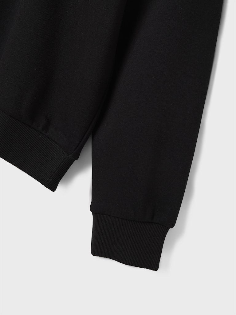 Για κορίτσια που αγαπούν το streetwear και τις minimal λεπτομέρειες, αυτή η μαύρη φούτερ μπλούζα της NAME IT είναι μια μοντέρνα επιλογή για τις καθημερινές φθινοπωρινές και χειμωνιάτικες εμφανίσεις. Η στάμπα “LE MARAIS” στον ώμο και το ταχυδρομικό νούμερο “75004 PARIS” στην πλάτη προσθέτουν μια διακριτική πινελιά Παριζιάνικης αισθητικής, διατηρώντας ταυτόχρονα ένα casual cool ύφος. Κατασκευασμένη από απαλή και ζεστή βαμβακερή σύνθεση με ελαστικότητα, εξασφαλίζει άνεση όλη μέρα.